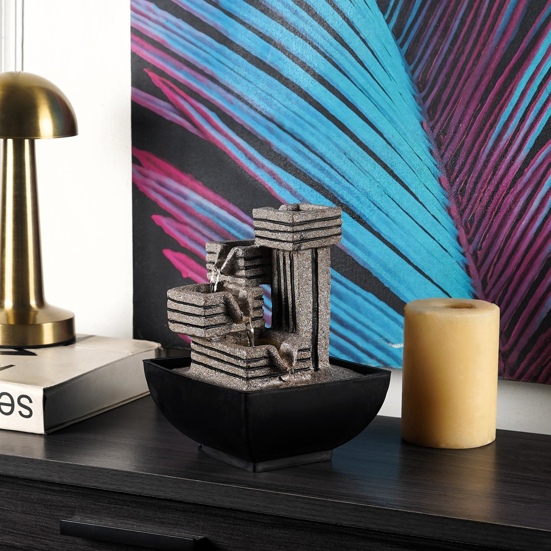 Its geometric, tiered design allows water to gently flow from level to level, illuminated by a soft built-in LED glow that adds warmth and ambiance. Perfect for desks, side tables, entryways, or meditation spaces, the Urban Stratum Fountain blends artful decor with the restorative energy of flowing water.