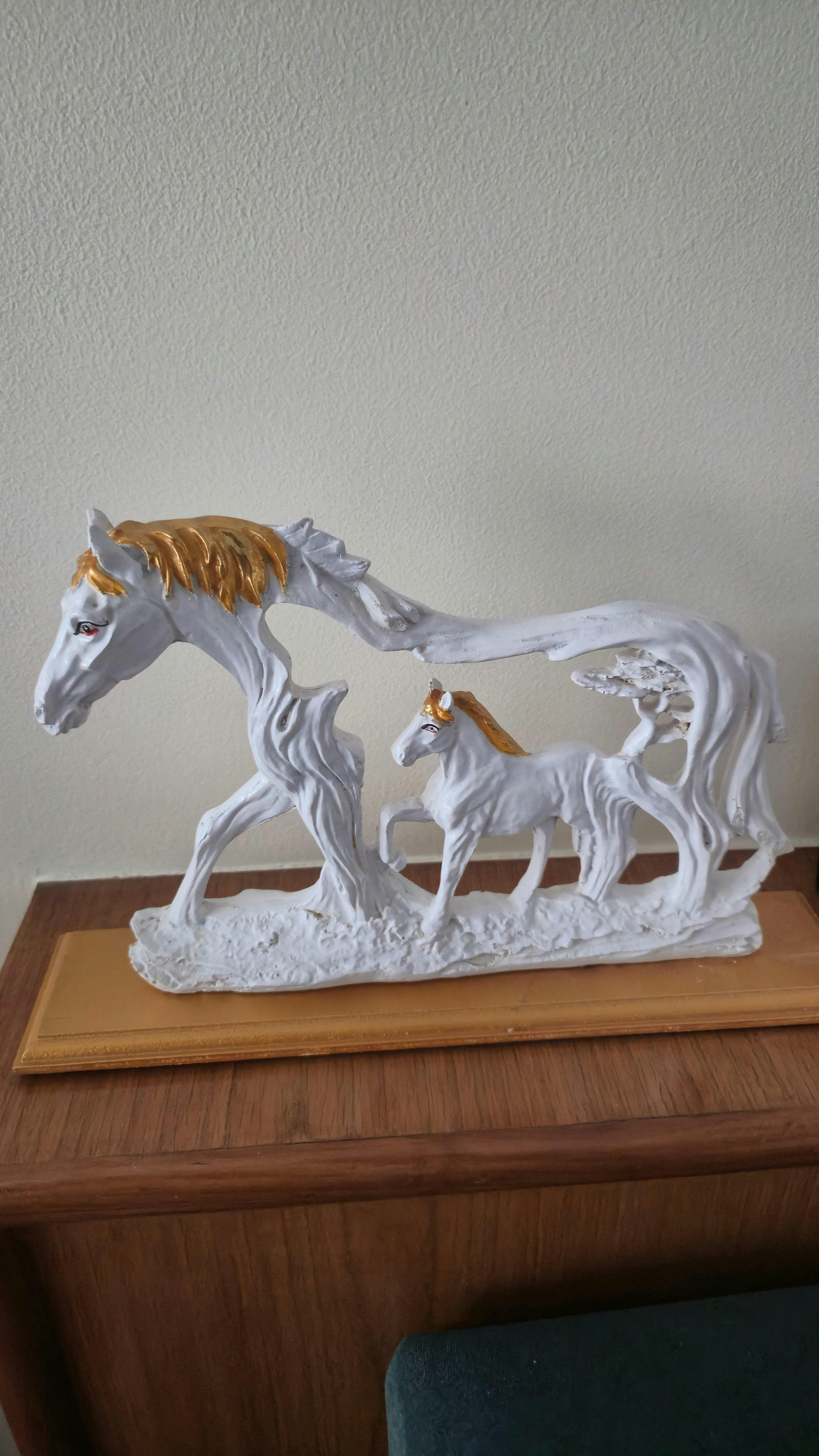 • When paired with black elements, the Feng Shui Galloping Horse Showpiece with Wooden Base shall become an eye-catching element of the decor