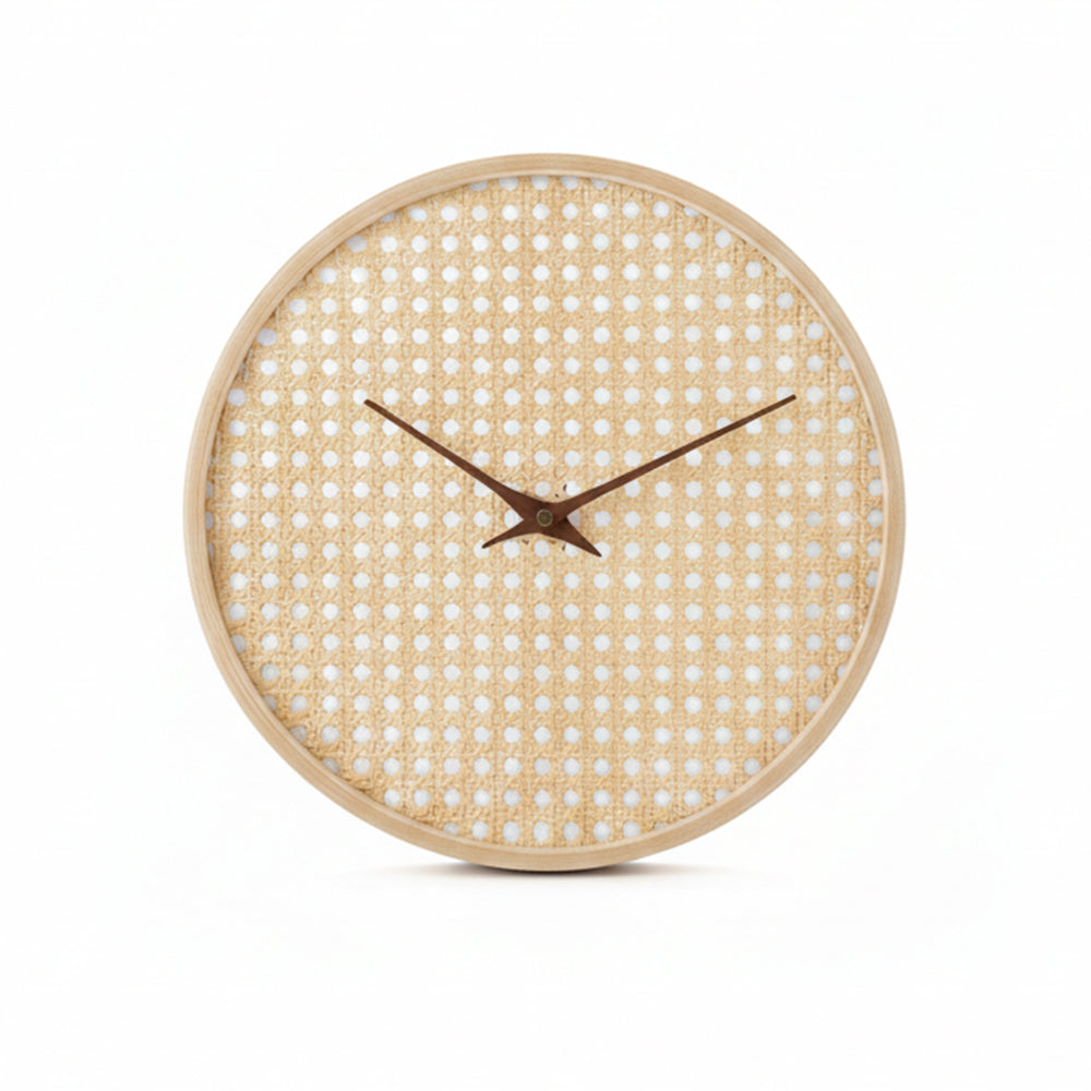 Bring warmth, texture, and quiet sophistication to your walls with the CaneHalo Clock — a sculptural wall clock that blends natural cane weaving with clean, contemporary form. Framed in smooth wood and centered around a minimalist dial, CaneHalo turns timekeeping into a design statement.