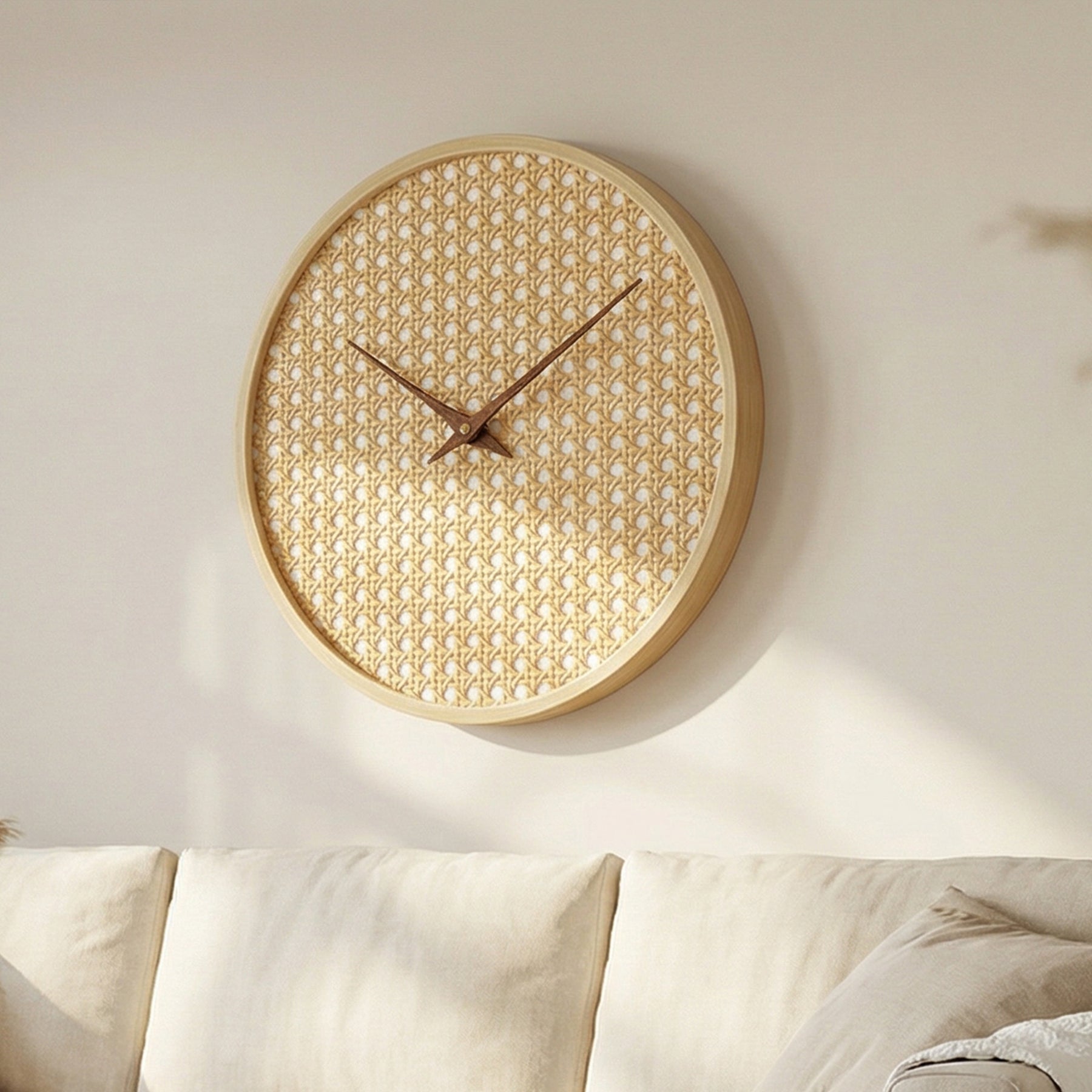 The woven cane face adds depth and artisanal character, while the circular silhouette and slim profile keep it effortlessly modern. Perfect for living rooms, bedrooms, dining spaces, or studios, this clock complements Japandi, Scandinavian, boho, and modern interiors with ease. More than a clock, CaneHalo is a moment of stillness in motion.