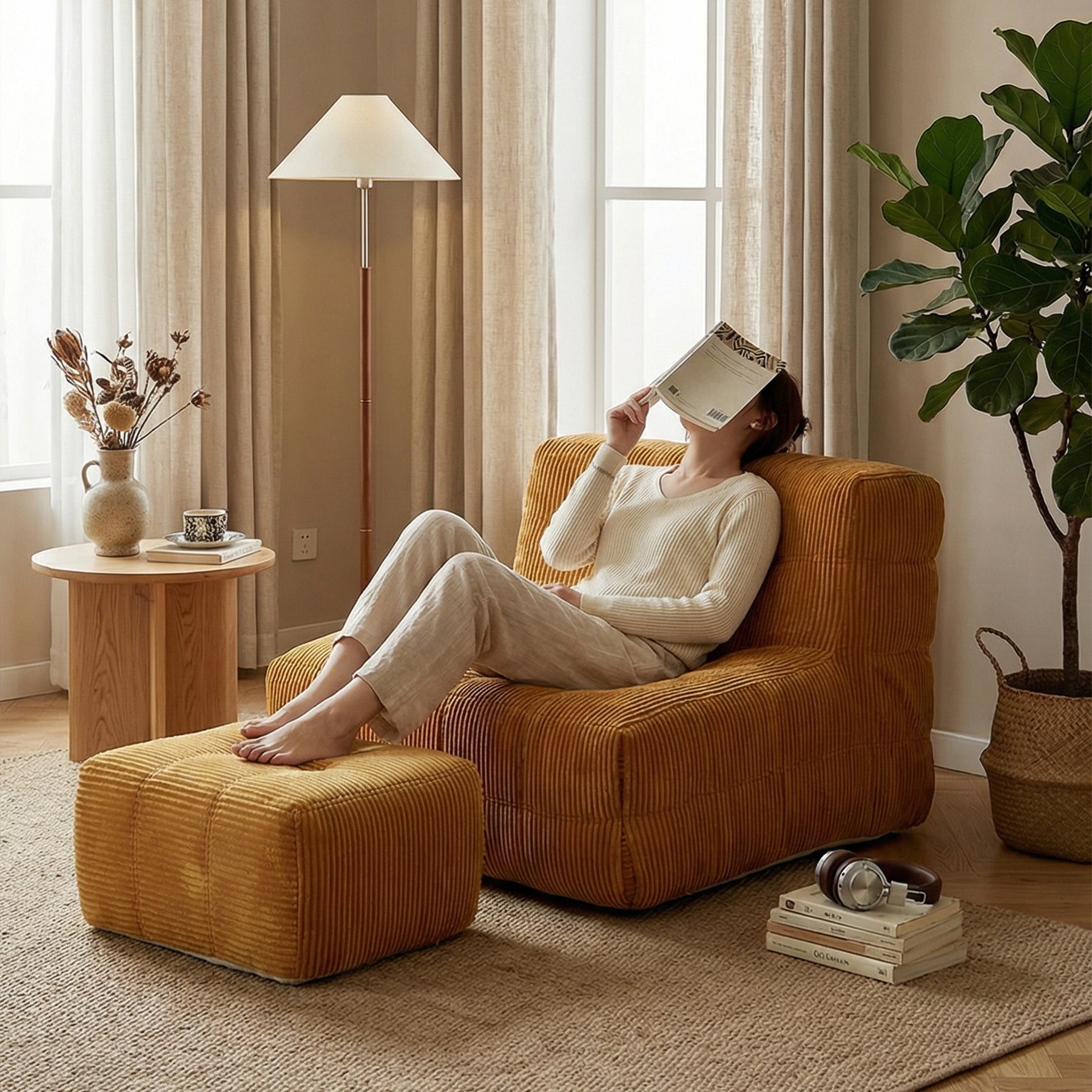 Sink into pure comfort with the Corduroy Cloud Seat, a modern lounge chair designed to bring warmth, softness, and a touch of retro charm into your living space. Wrapped in premium ribbed corduroy fabric, this seat offers a cozy texture and a chic aesthetic that blends seamlessly into bedrooms, living rooms, reading nooks, or even studio apartments.