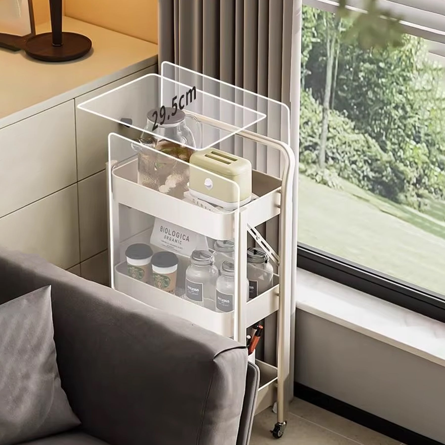 With its minimalist metal construction and easy-rolling caster wheels, the PivotTower Storage fits perfectly in kitchens, living rooms, offices, bathrooms, studios, and dorms. Store books, groceries, stationery, snacks, beauty supplies, or appliancesāthis tower handles it all while keeping your space clean and stylish.